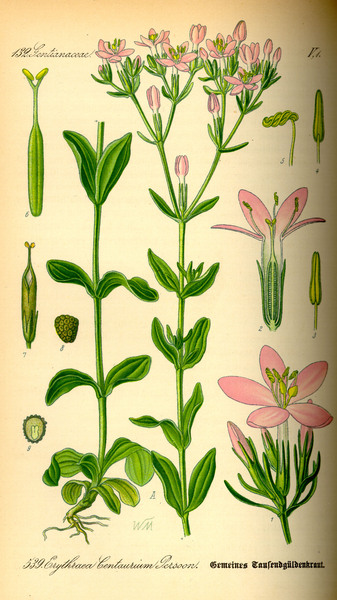 - Centaurium erythraea Rafn., common centaury, Echtes Tausendgüldenkraut