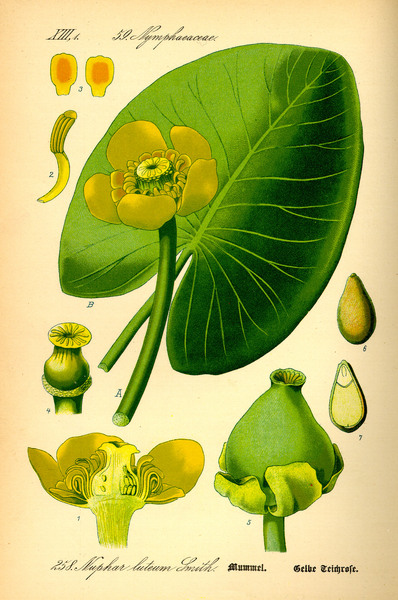 - Nuphar lutea (L.) Sibith. et Sm., yellow pond lily, Gelbe Teichrose